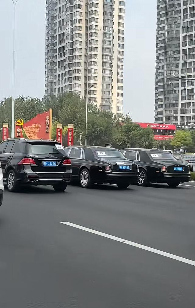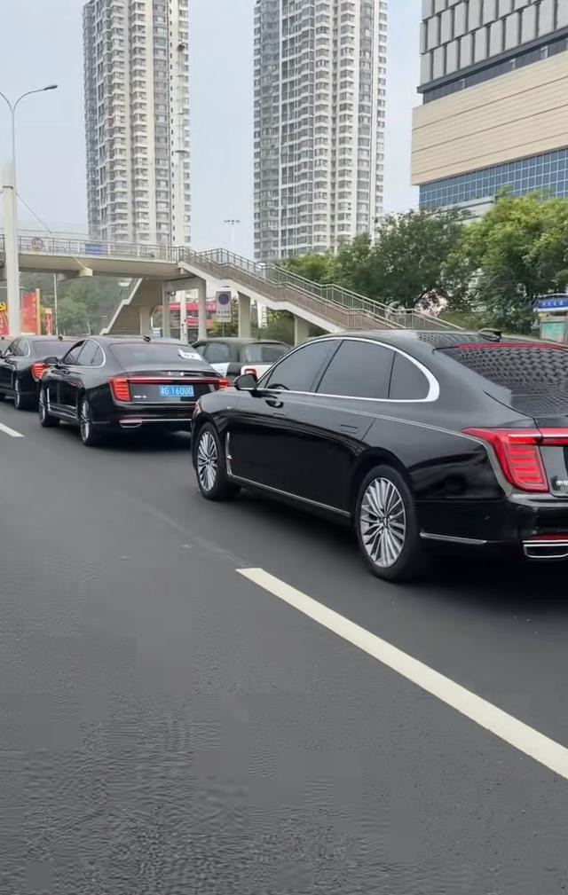 根据网友晒出的视频显示,最后一辆车是迈巴赫,前面还有红旗、劳斯莱斯、宾利等豪车。
